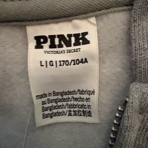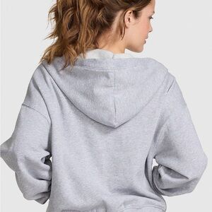 Chic gray varsity jacket by Victoria's Secret. Features a stylish logo detail. Ideal for layering.