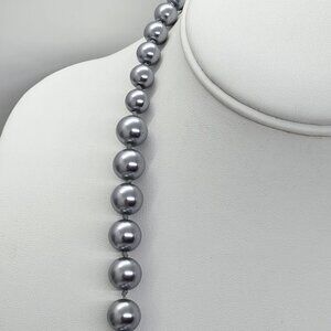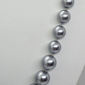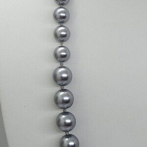 Coldwater Creek Graduated Silver Blue Glass Pearl Necklace
