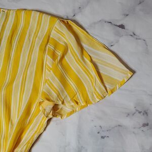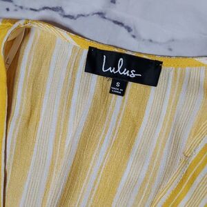 Lulu's Vibrant Yellow and White Striped Wrap Mini Dress