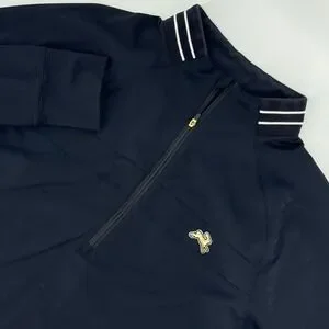Keywords: Tracksmith, Downeaster, Running Pullover, Quarter Zip, Athletic Wear, Training Top, Navy Blue, Performance Gear, Marathon Training, New England Style, Thumbholes