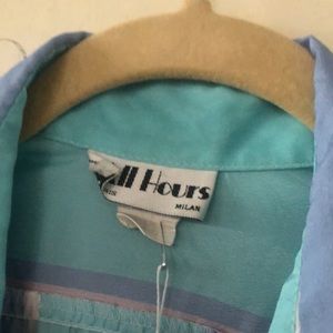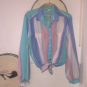 Vintage 1980’s - All Hours- pastel striped silky blouse- roll sleeves- large
