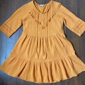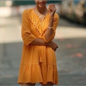 Anthropologie Eri + Ali Yellow Ruffled Tiered Angelica Tunic Sundress SZ XS