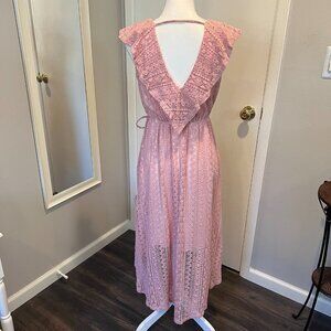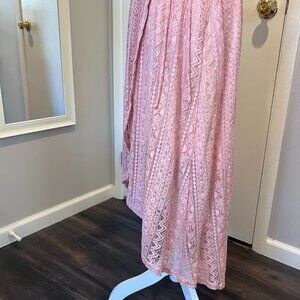 Aqua Pink Lace Hi Low Faux Wrap Dress, Size Small