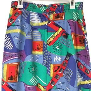 Pre-owned condition, Simon Chang Pencil Skirt Retro Graphic Print Abstract Geometric Colorful Fun Office Career Professional Preppy 80s