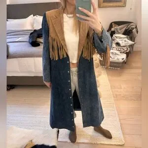 Denim and Tan Fringe Women's Coat