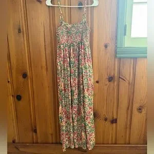 ❤️Natural Life Pink Green Cream Floral Maxi Dress with pockets