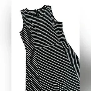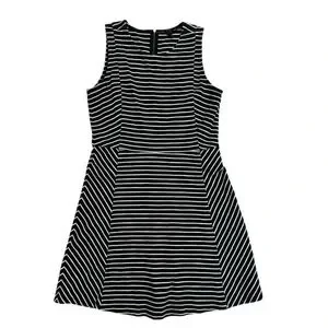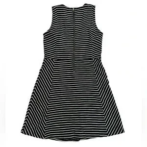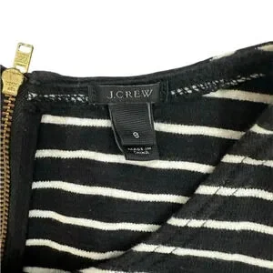 J. Crew Womens Fit Flare Dress Striped Back Zip Cotton Black White Size 8 EUC