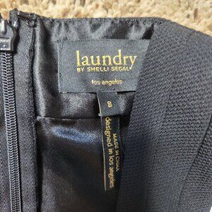 Laundry by Shelli Segal Criss Cross Black Halter Crepe Dress. NWT Size 8. Zips up the back. Silky lining. Fabric on the outside is heavier with a texture to it. Formal cocktail dress. New with tags.