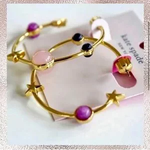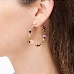 Slender hoops, handcrafted of plated metal, adorned with tiny stars and multicolored semiprecious stones. they'll add a whimsical touch to all of your looks.