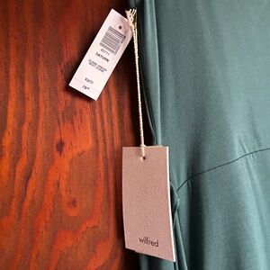 Brand new Aritzia Saturn Wilfred Dress. Mid length and drapey. Sage Green color. Never worn before with tags still on.