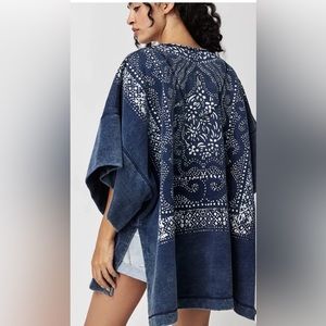 NWOT FP Free People On The Block Poncho Denim Paisley Bandana Contrast Hem Blue