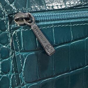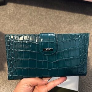 Longchamp Teal Crocodile-Patterned Clutch wallet