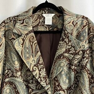 George Womens Plus Paisley Tapestry Blazer Jacket Brown Teal 22W/24W VTG Classic