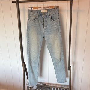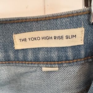 High rise jeans by Denim Forum. Light blue shade. Stylish and versatile.