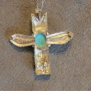 Silver Tone And Turquoise Thunderbird Pendant On Sterling Silver Chain / Z2B