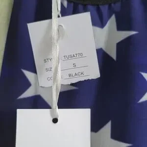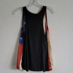 USA Tank Top American Flag Sleeveless High Low Hem Size Small Black