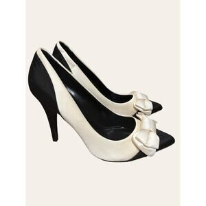 J. Crew Black Cream Two-Tone Stiletto Heel Bow Pointed Toe Pumps Size 7.5