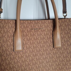 MICHAEL KORS RUTHIE Large Satchel Center Zip Tote MK Logo Pale Peanut