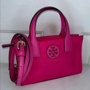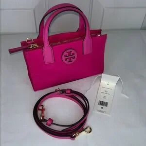 Tory Burch Ella Nylon & Leather Mini Tote Bright Pink NWT