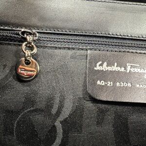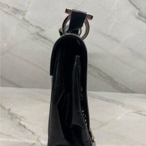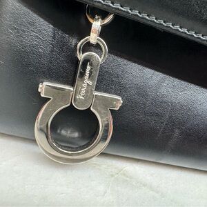 Salvatore Ferragamo Gancini Shoulder Bag in Black Calf Leather