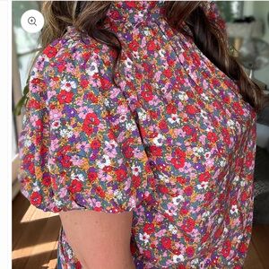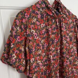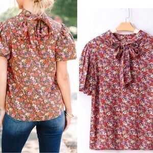 Vici Women’s Multicolor Floral Puff Sleeve Tie Back Blouse Top Size XL