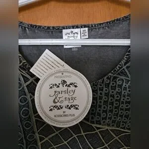 NWT Parsley&Sage 3X Grey blue & yellow Cotton, Rayon embroidered tank top