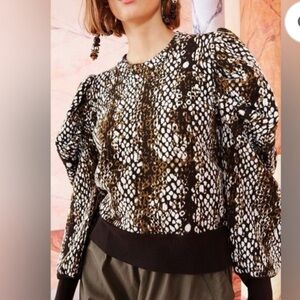 Ulla Johnson Gemma Pullover knit sweater brown Blanc Python Wool puff sleeve S