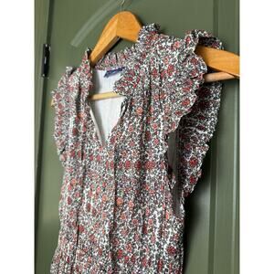 NWT Ro's Garden Bimba Mini Floral Tiered Ruffle Boho Tassel Dress Aix Red XS