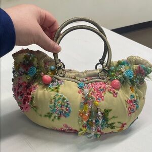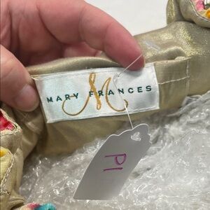 Mary Frances bags are known for their highly embellished, hand-applied beadwork and whimsical couture aesthetic. Most similar Mary Frances evening bags originally retailed in the $200–$400 range, depending on complexity and collection.