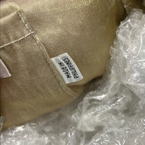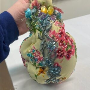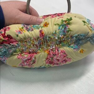 Pre-owned. Please see photos for detail. Interior currently stuffed for shape. No major structural issues visible from provided images. Beadwork appears intact.