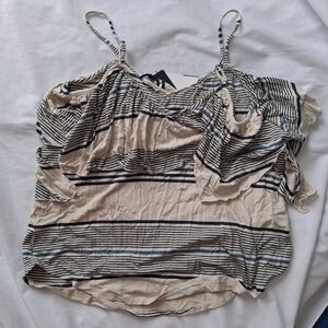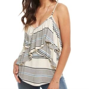 Chaser Blue and Cream Striped tank top NWT super cute ruffles