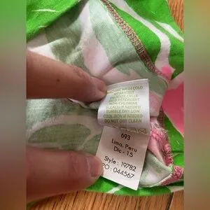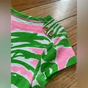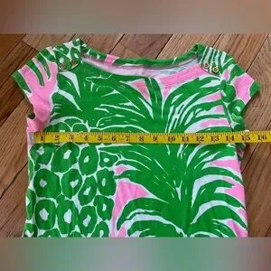 Lilly Pulitzer women’s Loren pink/green cap sleeved boatneck mini jersey/tshirt dress, size XS. Pink/Green Pineapple all over print design. 100% Cotton. EUC. No rips, holes, stains or odors. Please see photos for item details/dimensions. Some photos may appear different in color due to lighting. Ships from smoke-free home.