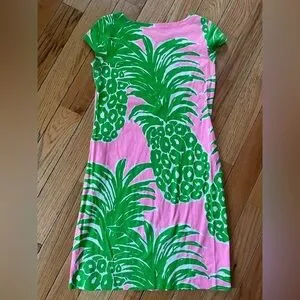 Lilly Pulitzer Women's Size XS Loren Pink & Green Pineapple Dress Boatneck