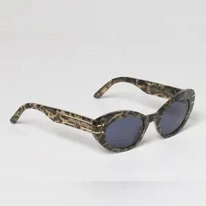 Stylish Dior sunglasses with a tortoise shell pattern. Perfect for a sophisticated look. Dior Eyewear's 'Signature' sunglasses are designed in a retro cat-eye shape with rounded edges. They've been made in Italy from acetate and have wide arms accented with the gold-tone logo between two slim stripes - pull your hair back to show off the detail.