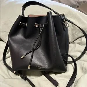 Chic black shoulder bag with drawstring closure. Stylish and functional design. Perfect for daily use.