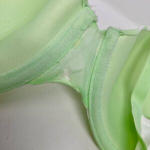 Set of two bras. One is red, and the other is green with white floral patterns.