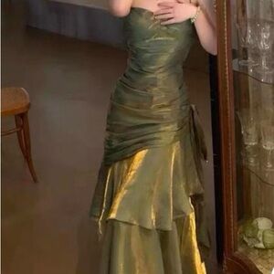 Women’s Vintage Fairycore Dress in Shimmering Olive Size M
