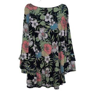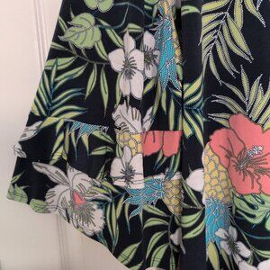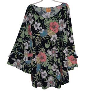 Ruby Rd Womens Stretch Blue Tropical Floral Casual Tiered Sleeves Shirt Size 3X