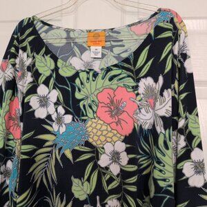 Ruby Rd Floral Shirt Womens Size 3X Blue Stretch Tropical Casual Tiered Sleeves