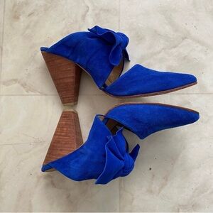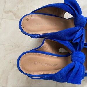 $550 Ulla Johnson Lucia Blue Suede Bow Pointed Toe Block Heels Mules size 9.5