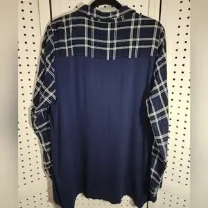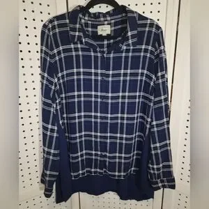 G.H. Bass XXL Navy Blue Plaid Button up Long Sleeve High Low