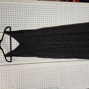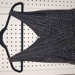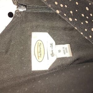 Talbots Pure Silk Size 10 Black w/ Cream Dots Midi Dress Sleeveless Pleated