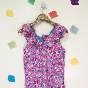 8 Lilly Pulitzer Linwood Ruffle Pink and Blue Print Romper NWT