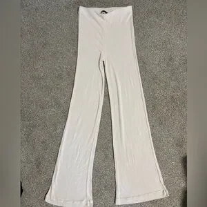 Zara Off-White Cream Long Knit Pull on Flared Pants Women’s Size Medium