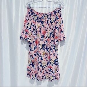 Lulus Hello Darling Pink Floral Off the Shoulder Dress