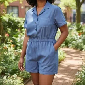 Stay stylish and comfortable in this chic blue short sleeve jumpsuit. Perfect for any casual outing.