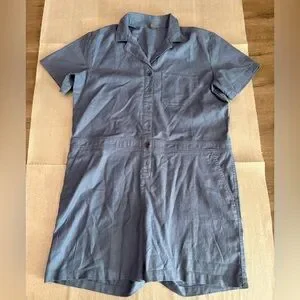 Eddie Bauer Blue Short Sleeve Hemp Linen Blend Romper Jumpsuit