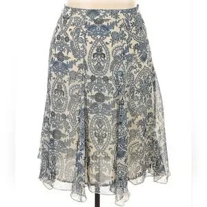 RARE Blue and Cream Patterned Skirt Flowing Airy Style Women's Midi Skirt 20W