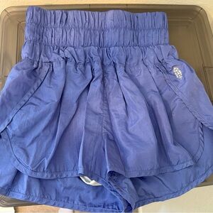 Stylish blue shorts by FP Movement. Features a ruched waistband and side pockets. Perfect for active wear.