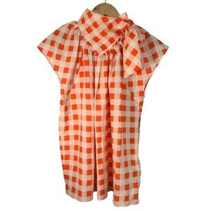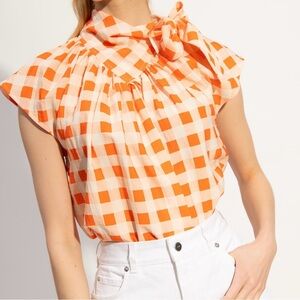Victoria Beckham, VVB, Designer Top, Gingham, Plaid Blouse, High Neck, Bow Detail, Summer Top, Statement Blouse, Orange Cream Checkered, Preppy Style, British Designer, Cottagecore, Casual Chic, Capsule Wardrobe